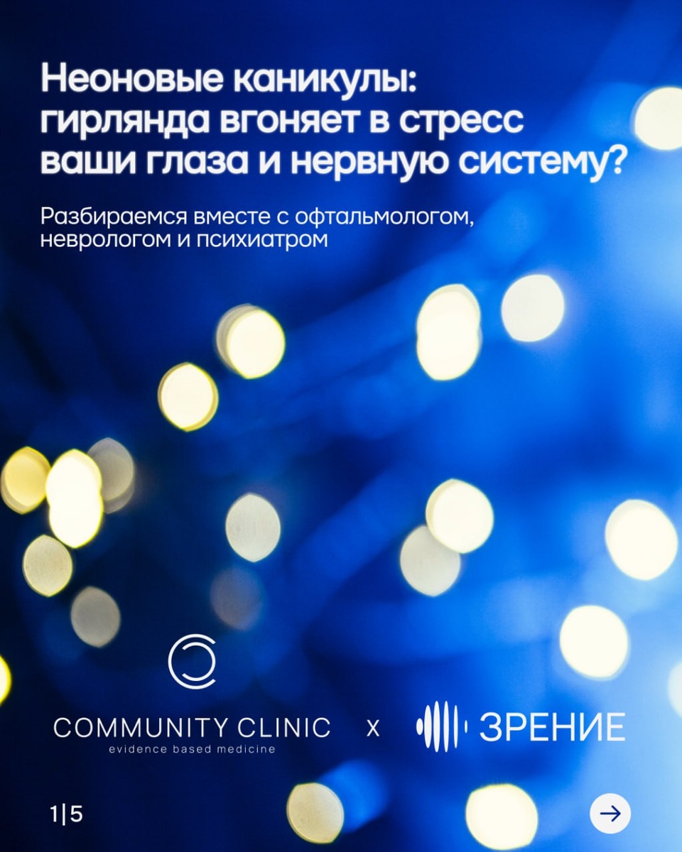 Праздничные огни везде🎅 Гирлянды мигают, витрины светятся, неон горит ярче обычного. А глаза привыкают, но не отдыхают. Все это создаёт излишнюю нагрузку — особенно для тех, кто и так много времени проводит за экранами или работает при искусственном свете. Стругова Александра Алексеевна, детский офтальмолог клиники «Зрение», рассказала, как выбирать гирлянды безопасно (особенно для деток), Журавлёва Алёна Сергеевна, невролог и Макеенко Владислава Евгеньевна, психиатр-психотерапевт, врачи COMMUNITY CLINIC, объяснили как и почему мерцание гирлянды влияет на нервную систему, и что важно знать о взаимосвязи света и сна в праздники. 💡💡💡💡💡💡💡💡💡💡💡 А на каком режиме у вас включена гирлянда?