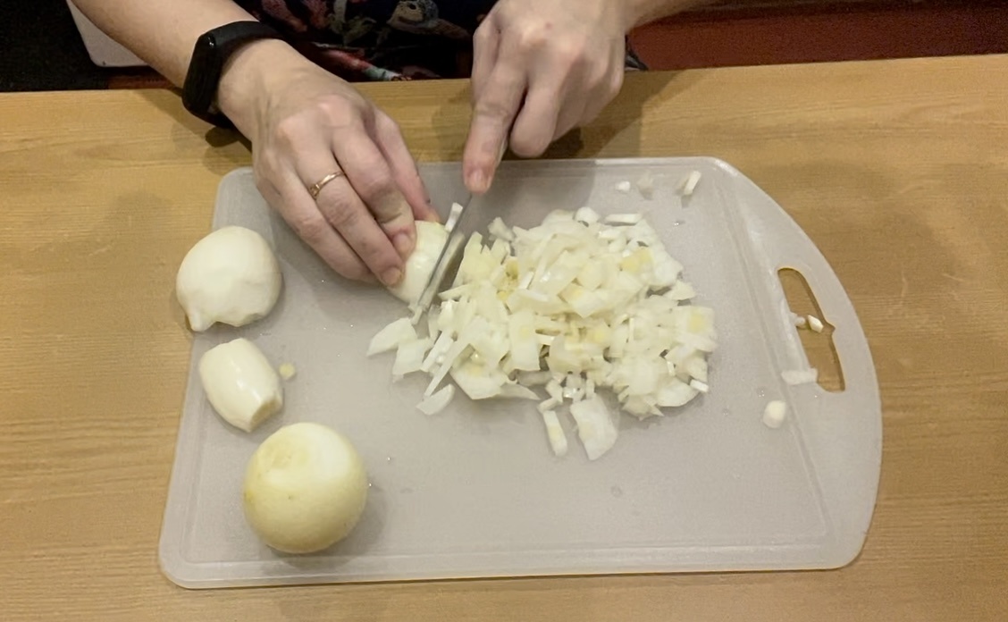 Далее нашинкуем капусту и отправим к луку, потушим чуточку под крышкой