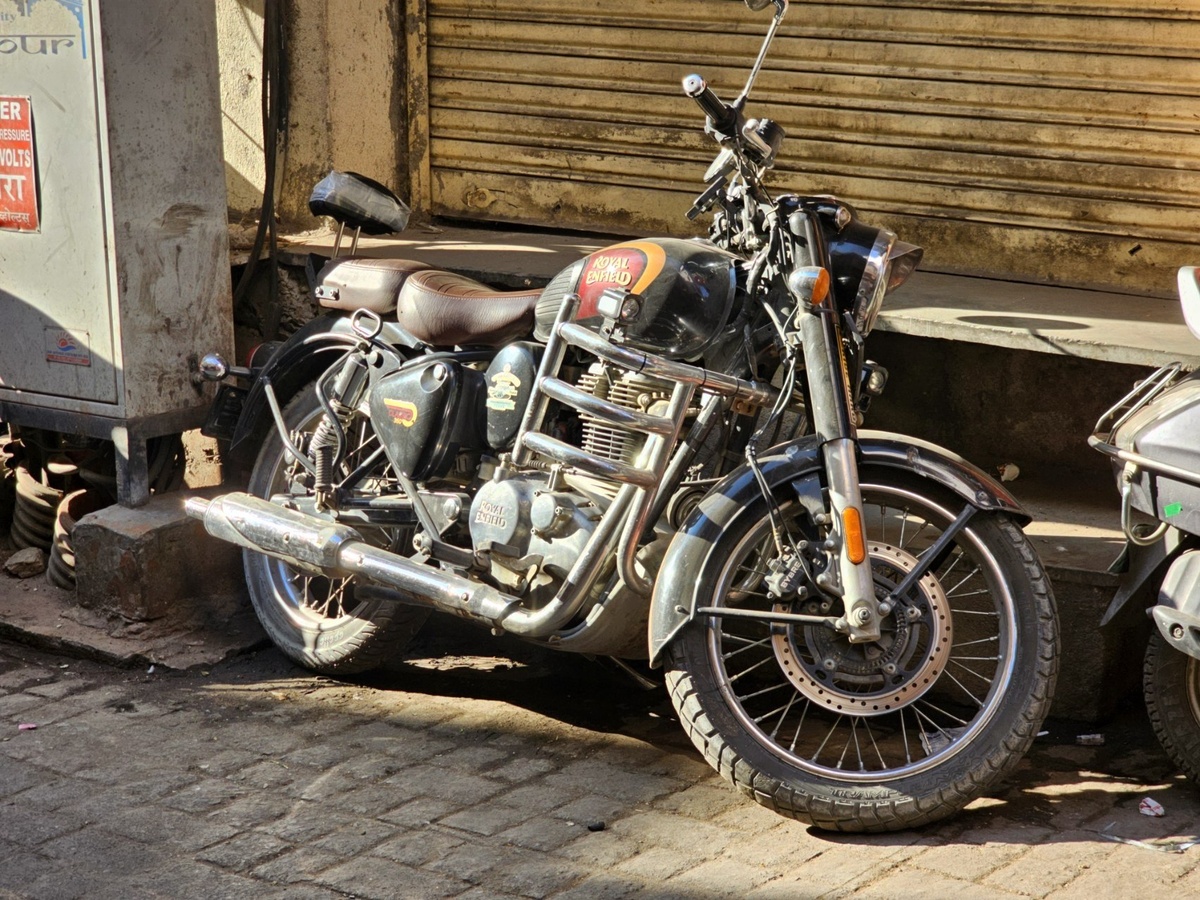 Это Royal Enfield Classic 350 2023 или 2024 года модельного ряда. К большому удивлению, мотоцикл оставил исключительно положительные эмоции, мотор очень тяговитый, хорошие жирные низы. Подвеска отрабатывала всё, даже сложенные на 80-90 км/ч несколько лежаков довольно острой формы! Она сбитая, энергоёмкая, имеет небольшие хода, сказал бы, что не такая диванная, чтобы по селу ездить за грибами, как на старом ИЖе, даже жестковатая, но для городских условий в самый раз. Мотор действительно приятный, звук на стоковом выхлопе сочный, но не громкий. По шоссе может идти комфортно 90-100, ещё для данной одностволки отмечу отсутствие неприятных и характерных вибраций, если сравнивать с другими, то их и нет вовсе, я бы сказал. Для моего роста в 178 см руль оказался низковат, отчего устают плечи немного, но всё решается проставками, скорее всего, приятная эргономика, приятные пульты, стильный вид.Как мне кажется, данный мотоцикл в наших реалиях больше подходит для выходного променада в центре горо