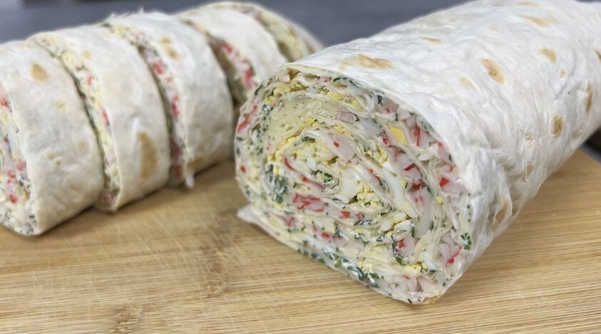 Сегодня хочу поделится с вами интересной закуской - рулет из лаваша с крабовыми палочками. Он не требует духовки или сложных техник — только миска, тёрка и десять минут времени на сборку. Ингредиенты — самые простые, их можно купить в любом магазине, даже в спешке. А на вкус он получается настолько гармоничным, что нравится практически всем: и взрослым, которые ценят знакомые сочетания, и детям, которых привлекает нежный вкус. Первым делом я достаю из холодильника всё, что понадобится. Это важно, чтобы продукты были под рукой. Мне нужно: 200 граммов крабовых палочек (или крабового мяса, если найдёте, — разницы во вкусе почти нет, но текстура может быть чуть иной). 4 яйца, которые я заранее сварила вкрутую и остудила. 120 граммов твёрдого сыра. Я беру тот, что хорошо плавится и не слишком солёный, типа российского или гауды. Пучок свежего укропа (примерно 5 граммов). Петрушка тоже подойдёт, но с укропом, на мой взгляд, вкус получается более праздничным и лёгким. 2-3 зубчика чеснока для