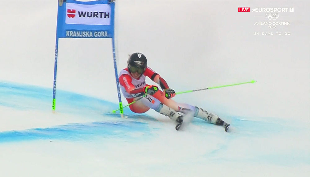 Ана Буцик-Йоган из Словении тоже была 27-й на первой трассе, запаса у нее нет. Наверху Ана проигрывает, не очень получается у нее побороться не только с Софией, но и с молодыми соперницами, занимающими сейчас второе и третье места. К финишу словенка добирается последней, четвертой, +1.33.