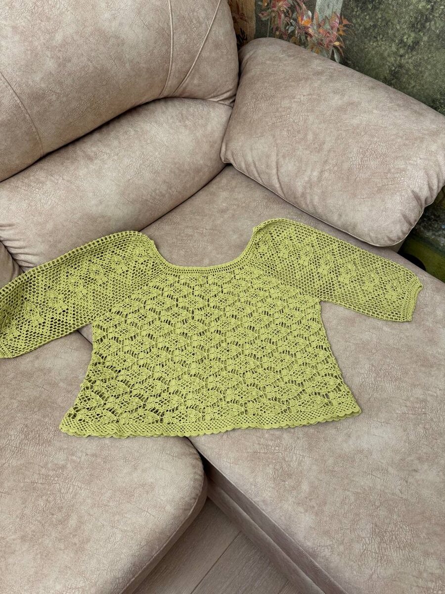Фото на модели не будет, так как отпаривала и упаковывала уже 31 декабря, да и не лето на дворе 😁 Пряжа, моя любимая, Анна 16, ушло чуть меньше 3 мотков(280 с чем-то грамм) размер вязала самый большой 50-52, на 46-48 получился оверсайз, крючок 2 мм, все как обычно, пряжа супер, схема супер, вязала долго, суммарно где-то месяц из-за выпуклых/вогнутых столбиков и попкорна, но результат нравится 🥝
