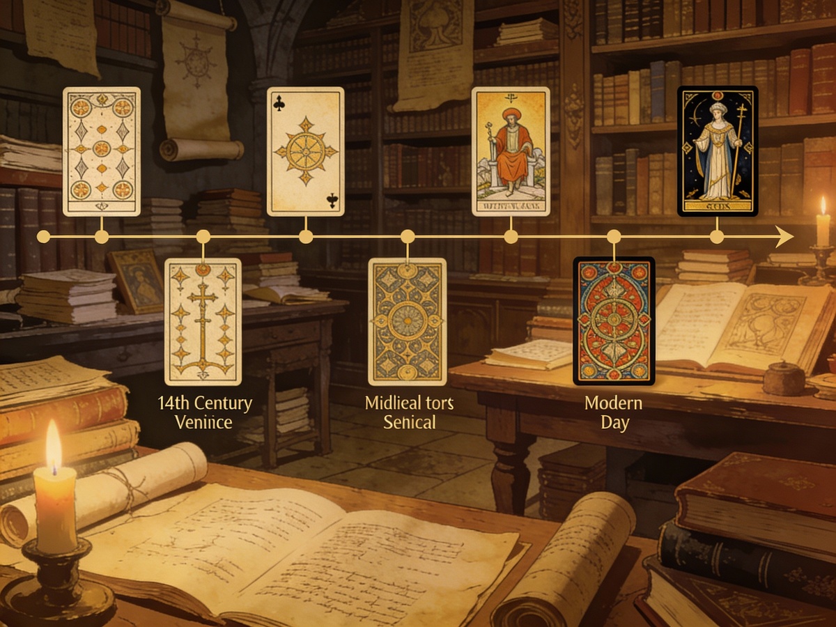 Таро не всегда было мистическим. Это может звучать странно, но 500 лет назад Таро — это была просто игра. Азартная игра в венецианских казино. И никакого мистицизма. Но потом что-то произошло. Люди начали видеть в этой игре смысл. И через 500 лет Таро превратилось в инструмент, который используют психологи. История начинается в 1440 году в Италии. Семья Висконти заказывает карточную колоду для развлечения. Это не Таро в том виде, как мы его знаем. Это просто красивые карты. На них нарисованы дворяне, животные, символы. Их используют для игры, похожей на современный бридж. Игра называется "Tarocchi". Это просто название. Ничего мистического. Просто развлечение для богатых. Колода распространяется по Европе. Все играют. Никто не думает, что это волшебные карты. Потом приходят мистики. Французские оккультисты. Они смотрят на эти карты и думают: "Погоди, здесь же закодирована древняя мудрость". Они начинают видеть в картах еврейскую Каббалу. Они начинают видеть в них алхимию. Они начинают