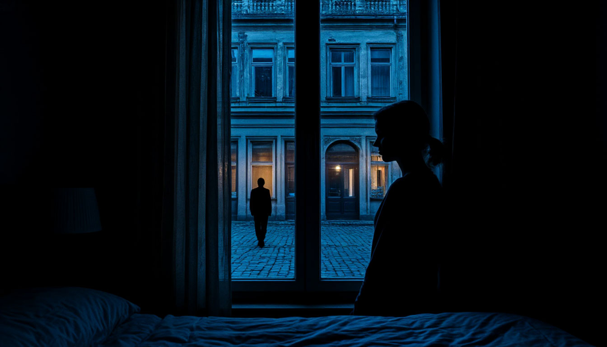 Мои шторы были не до конца задернуты. Напротив, через узкий двор, стоял такой же дом. В большинстве окон горел свет, мелькали силуэты людей, смотрели телевизоры. Но одно окно, почти на одном уровне с моей спальней, было тёмным. Совершенно тёмным. И в нём, на фоне этой черноты, чётко вырисовывался силуэт человека.