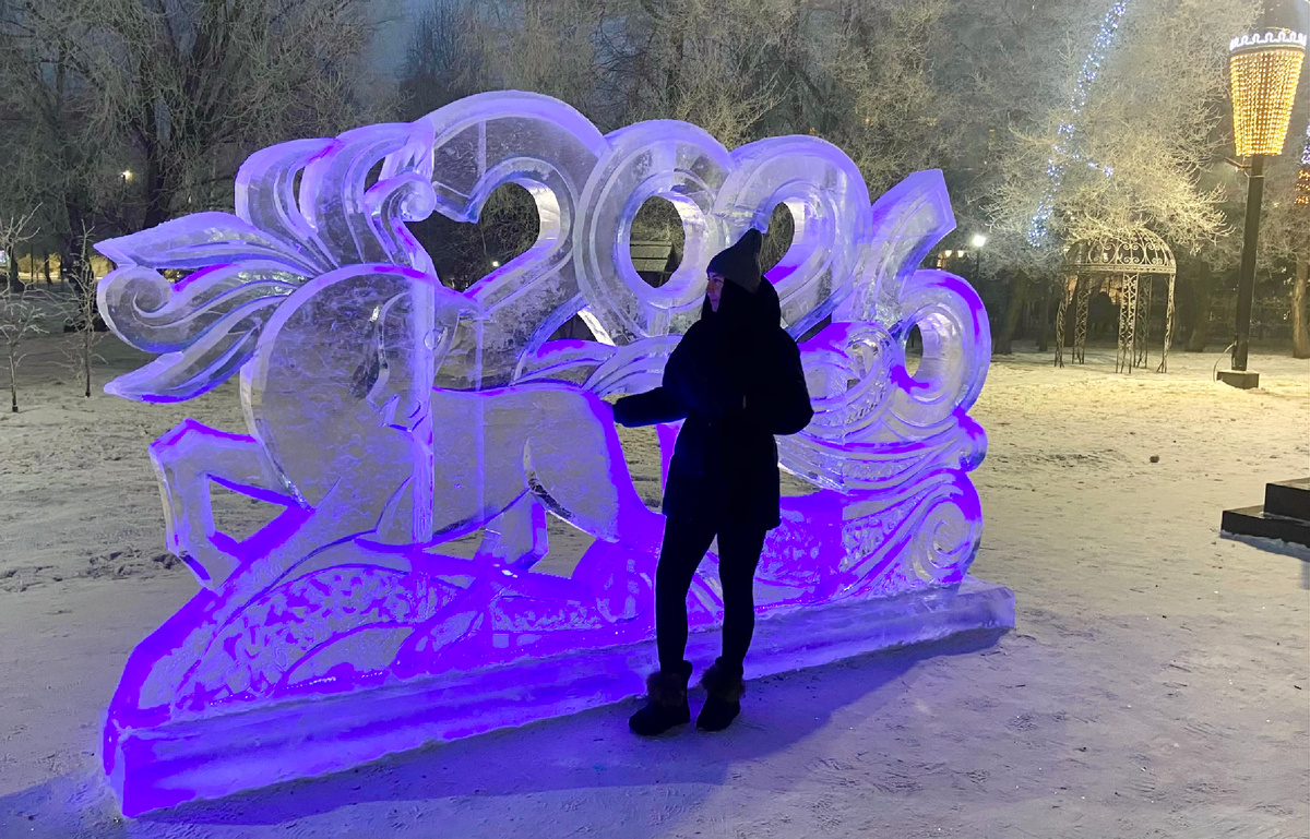 Посмотрела нашу Минусинскую ёлочку и ледяные фигуры вырезанные изо льда мастерами художниками.