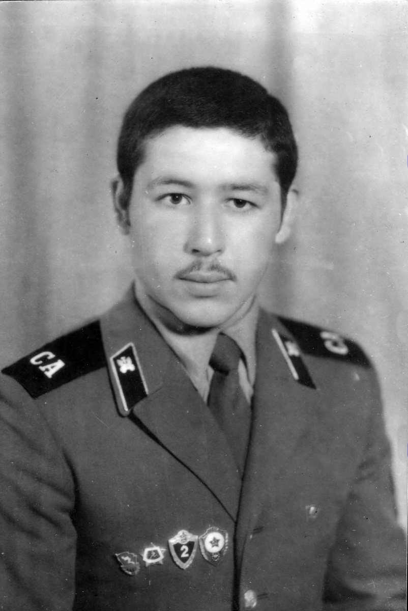 Рядовой автомобильных войск в открытом кителе с нашивными погонами образца 1973 года