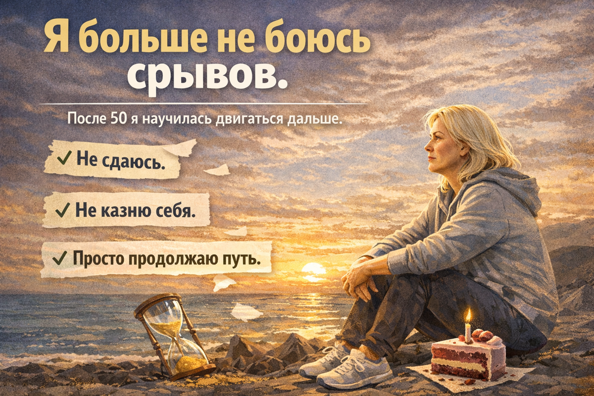 Раньше я боялась срывов больше всего. Не потому что они были редкими — наоборот. Потому что каждый срыв я воспринимала как доказательство собственной несостоятельности. Значит, не хватает силы воли. Значит, я опять всё испортила. Значит, можно не продолжать. Срыв всегда был концом.