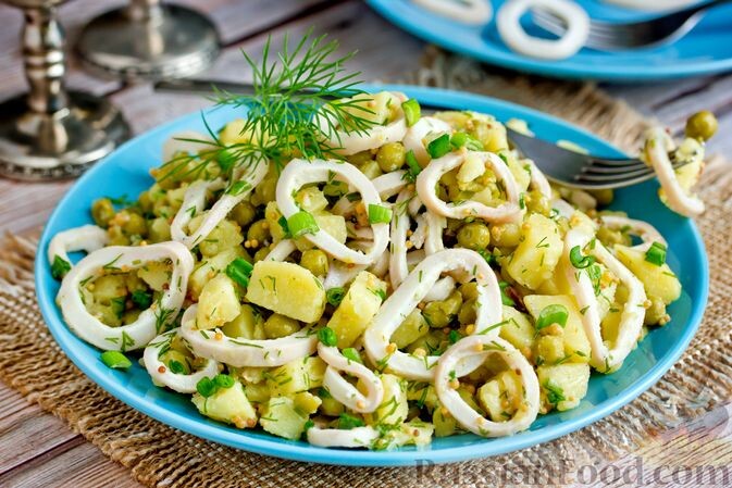 БЕРЕМ: 1. КАРТОФЕЛЬ ОТВАРНОЙ- 600 ГР.; КАЛЬМАР ОТВАРНОЙ- 150 ГР.; ЛУКОВИЦА- 1 ШТ. ; МАЙОНЕЗ- 0,5 СТАКАНА; ЗЕЛЕНЫЙ ЛУК, СОЛЬ И ЗЕЛЕНЬ ПО ВКУСУ. 2. ПРИГОТОВЛЕНИЕ: Филе отварных охлажденных кальмаров нарезать тонкими колечками , вареный картофель тонкими ломтиками, лук нашинковать полукольцами. Все смешать и заправить майонезом. Выложить горкой на блюдо , посыпать сверху зеленью укропа и зеленого лука. посолить , поперчить по вкусу. САЛАТ " РАССОЛС" ПО ЛАТЫШСКИ. БЕРЕМ; картофель-600 гр. ; свинина -200 гр. ; сельдь - 100- гр. ; соленые огурцы -300 гр. ; яблоки-100 гр. помидоры -2 шт. ; яйцо - 2шт. 4 листки салата. Соус: сметана-300 гр. ; хрен -80 гр. ; уксус 3%-60гр. ; яйца -2шт. ; горчица -15гр. ; зеленый горошек или зелень петрушки -100 гр. ; перец , соль по вкусу. . ПРИГОТОВЛЕНИЕ: Сваренный и очищенный холодный картофель, огурцы, яблоки( без кожицы и семян) нарезаем ломтиками. Также нарезаем ломтиками вареную свинину, сельдь и яйца. Положить в глубокую миску , все это зап