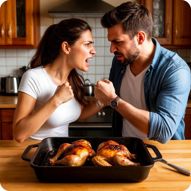 — Значит, если бы курица не сгорела, ты бы не назвал меня тупой курицей? — её голос был ровным, без эмоций.