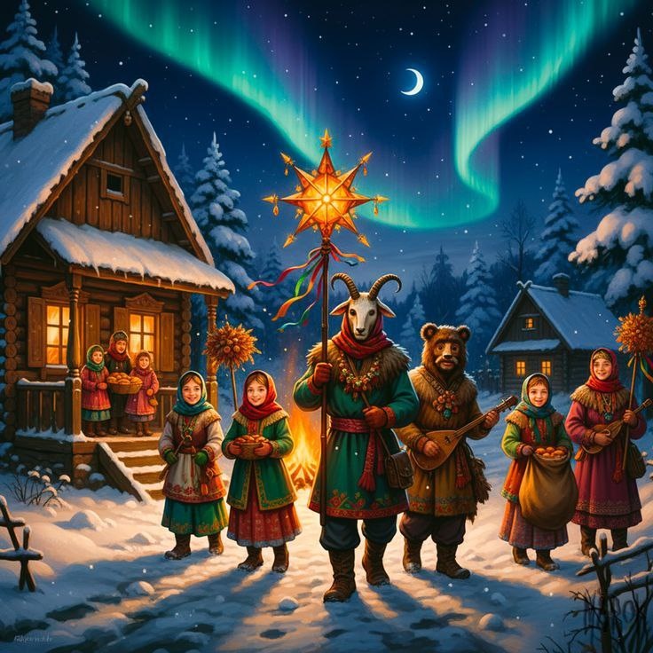 У славян Новый год долгое время не был датой в календаре. Он приходился на Колядин день - период после зимнего солнцестояния, когда свет начинает возвращаться. По своей сути это коллективное проживание точки перехода: из темноты в свет, из старого в новое. Праздник был шумным. Не семейным, не уютным, а уличным, телесным, чрезмерным. Ряженые в масках животных - медведя, козы, коня - ходили по деревне, нарушая привычный порядок. С психологической точки зрения это похоже на разрешённый регресс: можно быть не собой, выйти из социальной роли, дать место инстинктивному, дикому, «неприличному». Коза - символ изобилия - «умирала» и «оживала» за угощение. Очень точная метафора: чтобы жизнь снова пошла, нужно вложиться, накормить, поделиться. Ничего не оживает само. Колядки были не просто песнями, а проговариванием желаемого вслух - на урожай, тепло, достаток. Сегодня мы сказали бы: коллективная вербализация надежды. В домах шли гадания. Девушки слушали лай собак, клали под подушку гребень