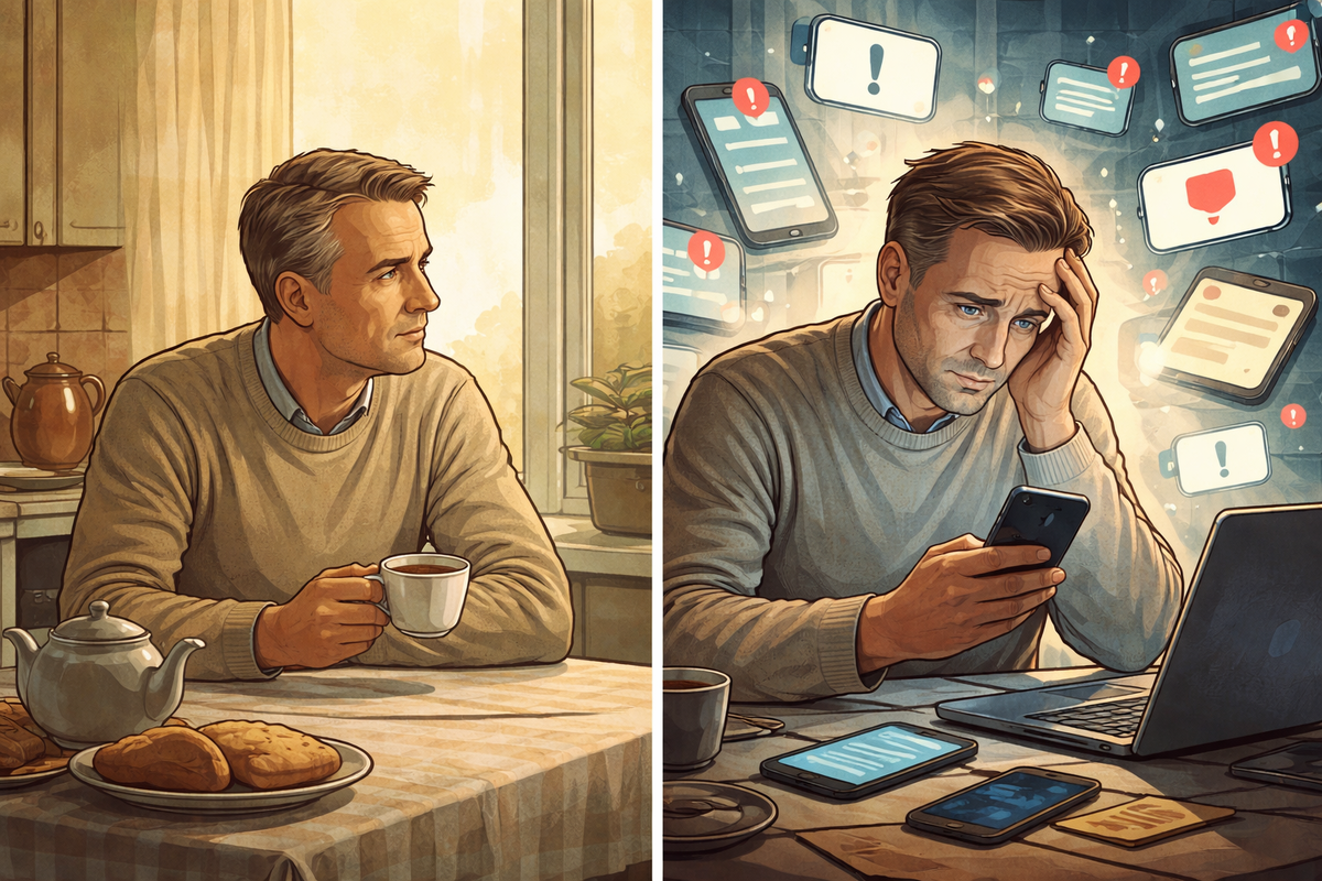 Ты просыпаешься. Ещё не открыв глаза, протягиваешь руку к телефону. Мир обрушивается на тебя вопросом, который задаёт сам себе уже миллион раз: «Что выбрать?» Выпить капучино или эспрессо? А может, холодный напиток? Надеть синюю рубашку или белую? Проверить новости в Telegram или пропустить утренний инфошум? Доехать на машине, чтобы сэкономить время, или на метро, чтобы сэкономить нервы? Каждый шаг — развилка. Каждая минута — маленький экзамен. И к десяти утра ты уже чувствуешь лёгкую, но изматывающую усталость, будто совершил два десятка микро-подвигов, просто начав свой день. А потом — ловишь себя на странной мысли. Вспоминаешь другое утро. Давнее. Когда не было этого щемящего чувства упущенных возможностей в каждой мелочи.