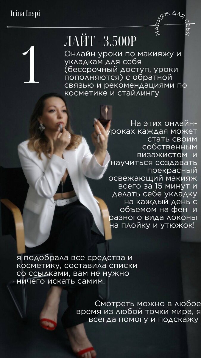 💄 ❤️Онлайн-уроки по макияжу и укладкам для себя Они тебе необходимы, если ты: 💄Делаешь макияж, но он тебя не устраивает, хочется круче, больше, красивее 💄Не можешь подобрать подходящие тебе кисти и косметику 💄Не имеешь возможности обучаться очно на моих курсах из-за нехватки времени 💄Хочешь лучше понять свою внешность, научиться подчёркивать свои достоинства, а недостатки грамотно маскировать 🧴Боишься растеряться среди огромного выбора косметики и потратить лишние деньги 🧴Не хочешь тратить кучу времени на ежедневный макияж, но при этом хочешь всегда оставаться на высоте ⚠️⚠️⚠️⚠️ ❤️Уроки добавляются и пополняются объяснениями - цена будет увеличиваться ❤️отвечаю на ваши вопросы и добавляю уроки с разъяснениями, если что-то непонятно ❤️ подобрала разные ценовые категории косметики и разбила их на группы - чтобы вам удобнее было выбрать себе по цене и функционалу ❤️Стоимость доступа к этому великолепию всего 🟰 3.500₽ и доступ ❤️бессрочный ❤️пересматривать и пользоваться