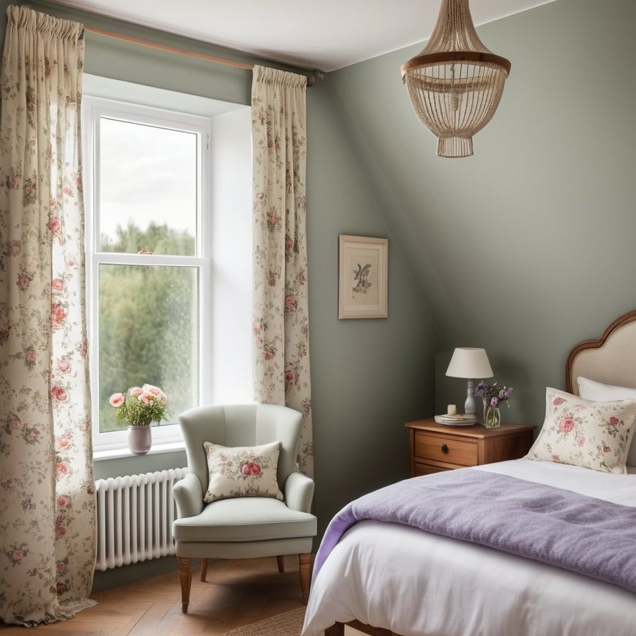 Интерьер спальни в стиле прованс: цветочный принт и дерево