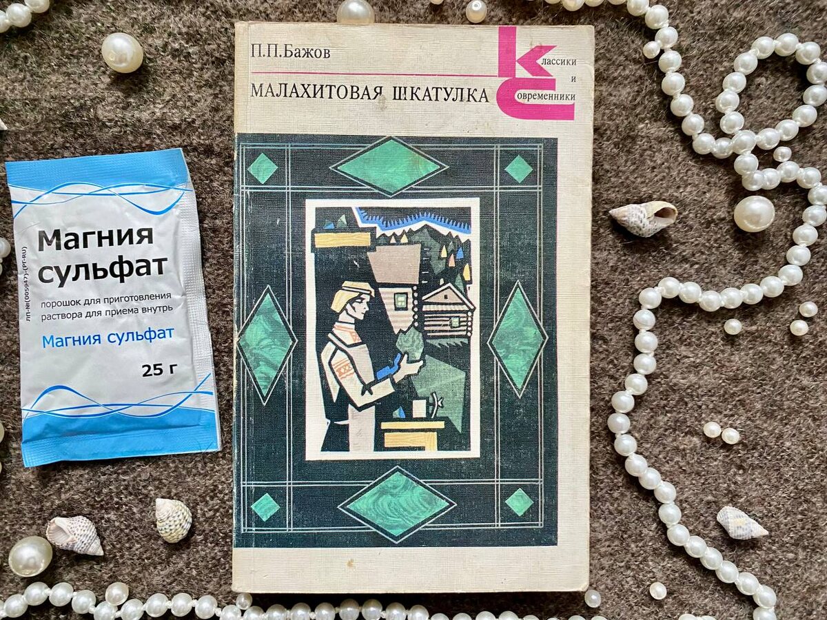 ПАВЕЛ ПЕТРОВИЧ БАЖОВ "МАЛАХИТОВАЯ ШКАТУЛКА" Тут о книге: "В настоящее издание включены наиболее популярные сказы. В них тесно переплетаются фантастические персонажи: Хозяйка Медной горы, Огневушка-Поскакушка, Великий Полоз, бабка Синюшка - и образы трудовых людей старого Урала: "мастеров по каменному делу", "золотодобытчиков". Многие герои П.Бажова воссозданы на театральной сцене и киноэкране, в живописи и скульптуре." А для меня всего милее в ней Глафира и "Золотые дайки": "Поворошить такое - старикам услада, молодым - наученье. ... - Слыхала,- говорит,- сладких слов от тебя немало, да дела не видала. ... - Приодеться позвольте. Негоже в барский дом растрёпой показываться. ... Женщина молодая, в полной силе, пути не исхожены, смерть не манит." Москва · "Художественная литература" · 1990 #ИздательствоХудожественнаяЛитература #АОПерваяОбразцоваятипография * Размер 13х20 #ПодОднуМастьСоМною ** Успокаивающий порошок магния сульфат для раствора в тёплой ванной #ОООТульскаяФармацевтическая