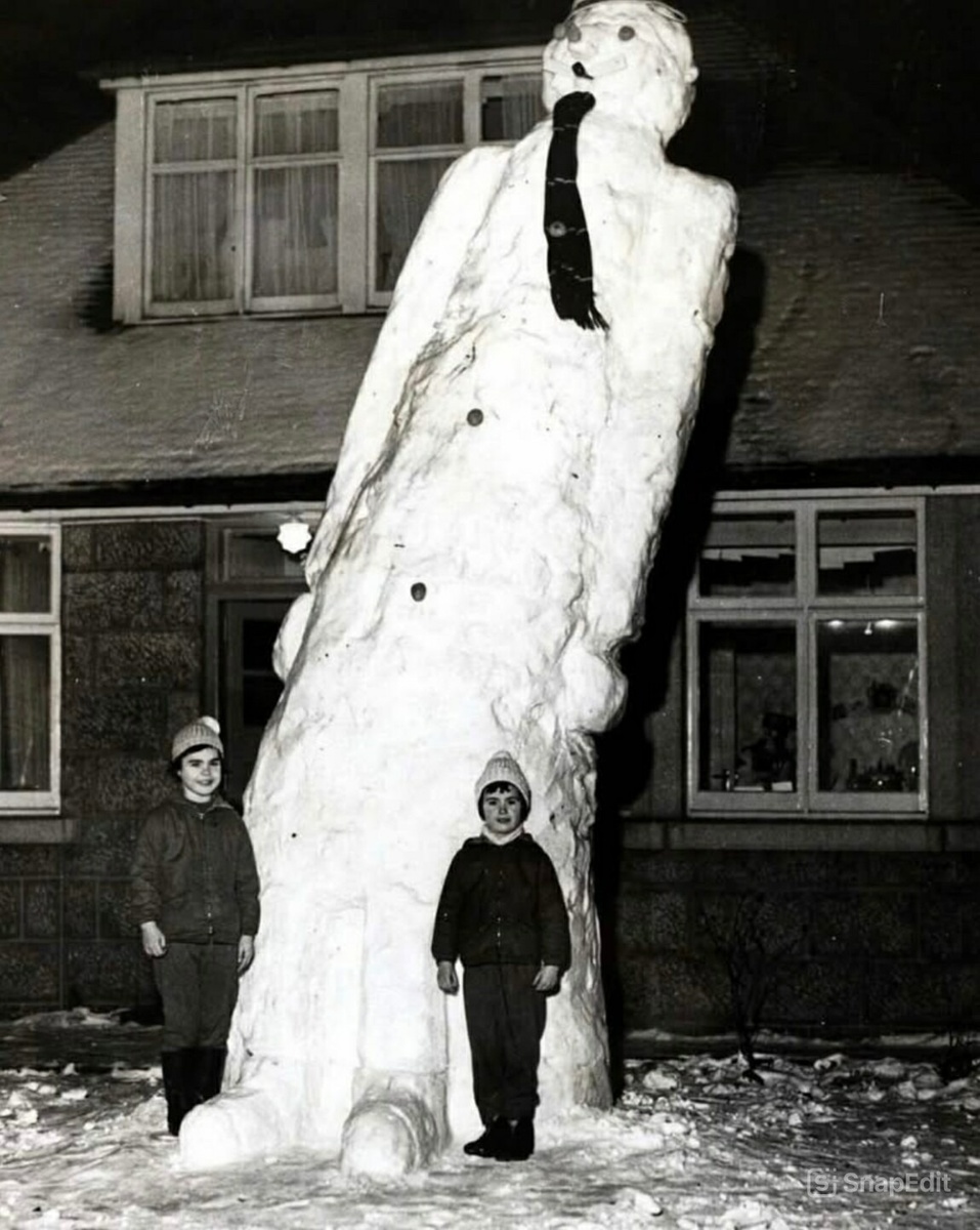 Здоровенный снеговик сфотографирован в 1963 году в Шотландии. Я очень надеюсь, что эти две девочки не мастерили его самостоятельно. ++++++++++++ Поддержите канал подпиской, если вам не трудно. Заранее благодарна! ➦ https://vk.com/club231957380