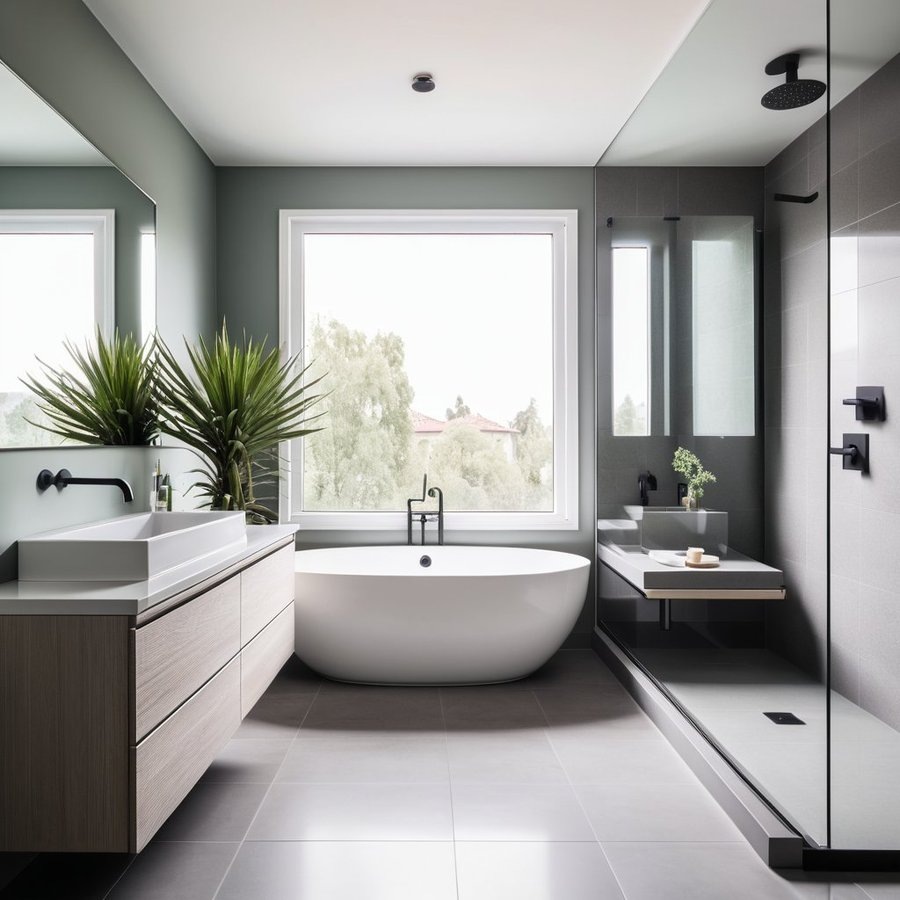 Выбор материалов играет ключевую роль. Устойчивые к влаге поверхности, такие как керамическая плитка или водоотталкивающие краски, обеспечивают долговечность. Для создания стильного интерьера можно применять современные элементы декора - подвесные полки и стильные светильники. Функциональное зонирование, например, с помощью стеклянных перегородок, добавит изюминку и позволит разделить пространство на зоны, не уменьшая его визуально.
