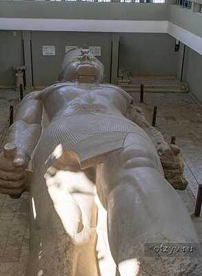 На снимке вверху статуя Рамзеса II, причем эта огромная статуя находится в крытом павильоне в лежащем положении. Вообще там особо нечего смотреть, разве что впечатляет эта огромная статуя . Но для первой экскурсии в Египте было неплохо. Да, мы там купили две пирамидки, якобы из камня. Не помню точно за сколько ( 10-15 евро ), жене очень захотелось...Только это явно не камень, а строительный алебастр и стоимость таких сувениров поэтому 1-2 евро. Такие сувениры в Египте повсеместно и потом я за 2 евро один такой купил с рук и сравнил, царапая снизу, ножом-одно и тоже. С сувенирами там напряг: при малейшей заинтересованности оными на вас нападает целая орда желающих что-то всучить. Причём цены сразу заряжают минимум пятикратные, никто не предлагает по реальной цене, за которую готов отдать. Нужно торговаться сразу с кучей народа, а нет ни времени, ни желания. Да, могут предложить ещё сувениры из гипса, они дешевле, их могут предложить даже пару за доллар. Они по весу легче и мягче, легко крошатся.