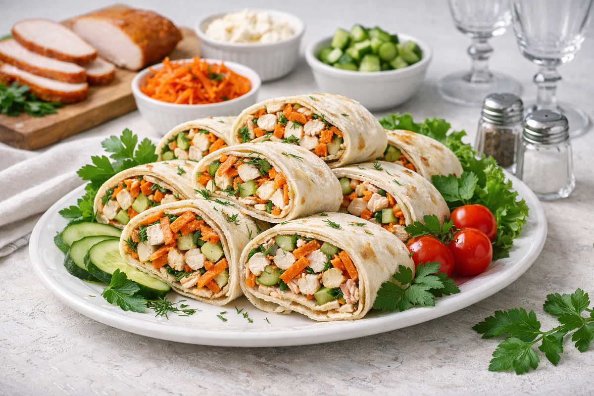 Есть такие закуски, которые вроде бы простые, но каждый раз вызывают одинаковую реакцию: «А из чего это?» и «Можно рецепт?». Этот рулет именно такой. Нежный, сочный, с дымком от копчёной курицы, хрустящим огурцом и лёгкой остринкой корейской моркови. Готовится быстро, выглядит празднично, подходит и к будням, и к гостям.