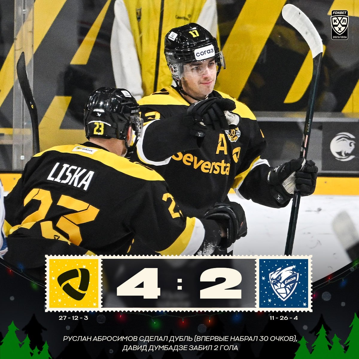 🟡 Дубли Абросимова и Думбадзе принесли «Северстали» третью в сезоне победу над «Ладой
