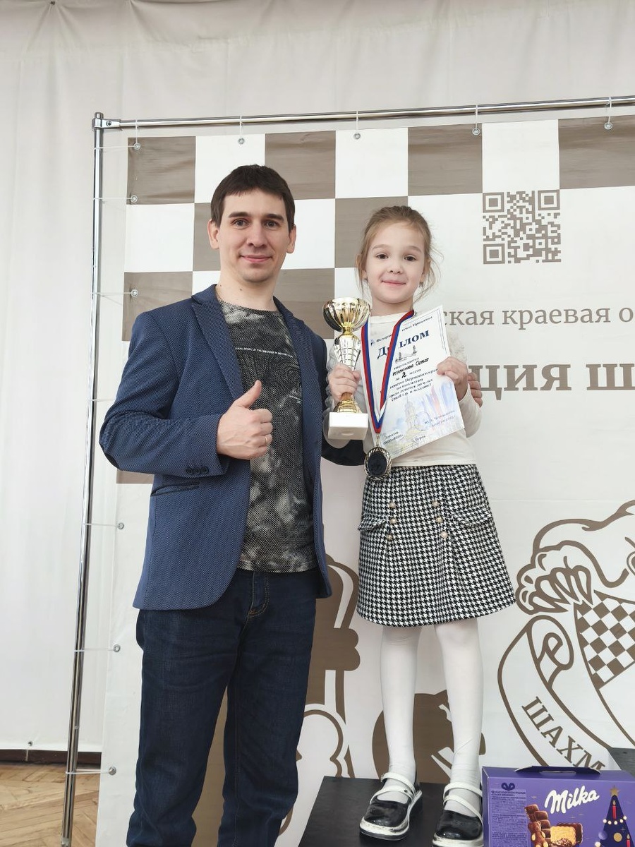 🏅 С 27 по 29 декабря в Перми состоялось Первенство Пермского края по шахматам среди мальчиков и девочек до 2018 года рождения. В турнире приняли участие 37 юных шахматистов из Перми, Березников, Соликамска, Чернушки и Краснокамска. 🏆 Результаты: Турнир среди девочек: Артамонова София (2018 г. р.) из Перми заняла 2-е место, набрав 6,5 очка из 8. Она выполнила норму 3-го юношеского разряда. Турнир среди мальчиков: Кочнев Ярослав (2019 г. р.) из Перми набрал 4 очка из 7 и выполнил норму 3-го юношеского разряда. Отлично! Кочнев Александр (2021 г. р.) из Перми набрал 3 очка из 7. Это было его первое соревнование по классическим шахматам. Молодец, боец! 🎉 Данное первенство стартовала раньше предварительных сроков, так как сдвинулось Первенство России до 9 лет. Готовимся к новым соревнованиям!