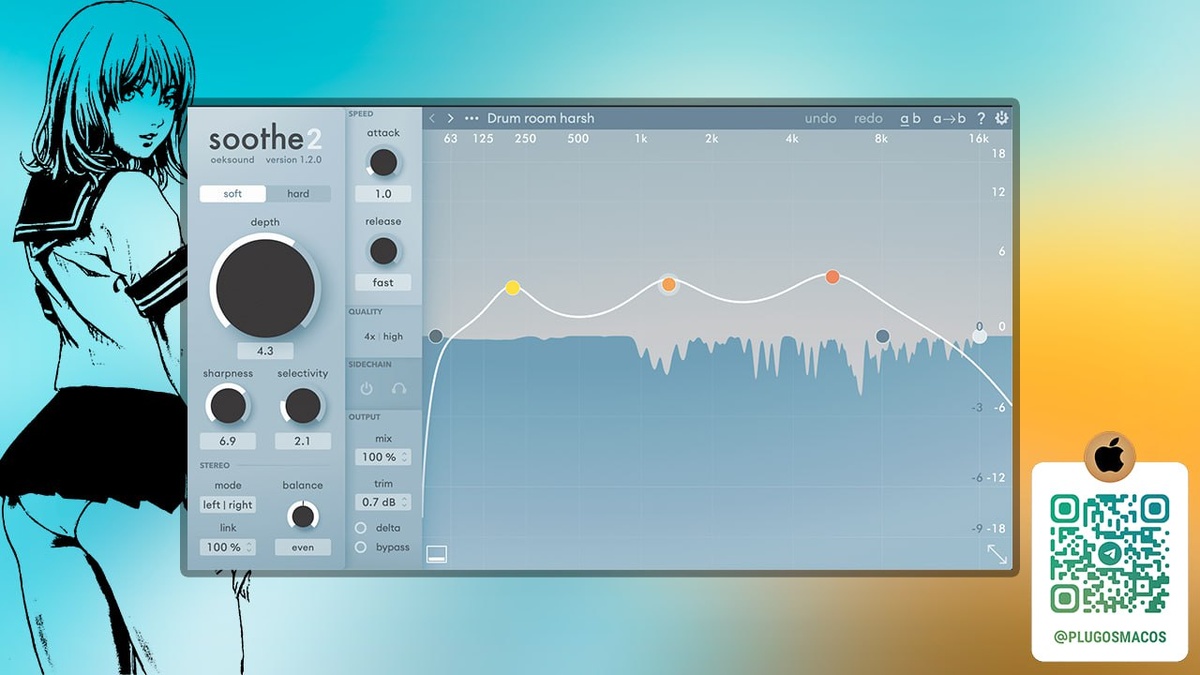 Разработчик: oeksound Версия: 1.3.3 Формат: VST, VST3, AU Разрядность: 64bit Таблэтка: Присутствует Системные требования: Mac OS X 10.14 (Mojave) – macOS 26 (Tahoe) Размер: 126 MB Установка:🍏 При установке плагина возможно потребуется Xcode, для этого необходимо в терминале ввести команду: Код: xcode-select —install Сообщение от Team FLARE — Для работы не требуется драйвер iLok. Скачать - win | mac Всё нужное в едином посте - тык Предложка | партнёрство *️⃣ @VitosuliPartnership Описание: Soothe2 - это динамический подавитель резонанса. Он мгновенно определяет проблемные резонансы и автоматически применяет соответствующее снижение. В результате звук становится более мягким и сбалансированным, и вам не нужно вручную вырезать частоты. Снижение применяется только тогда и там, где это необходимо, не затрагивая близлежащие частотные области. Это позволяет сохранить тембр исходного источника звука и добиться прозрачной обработки с минимальными артефактами. Чат битмарей Block Big Плагин 🎸