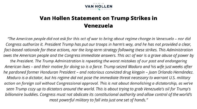 Trump ‘seizing’ Maduro aims to ‘grab Venezuela's OIL for his billionaire buddies’ — Sen. Van Hollen