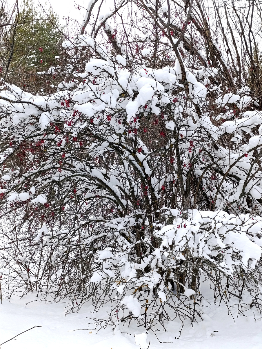 Они красивы в любое время года - и когда цветут, и когда плоды созревают, а сейчас - на фоне белого снега, особенно!