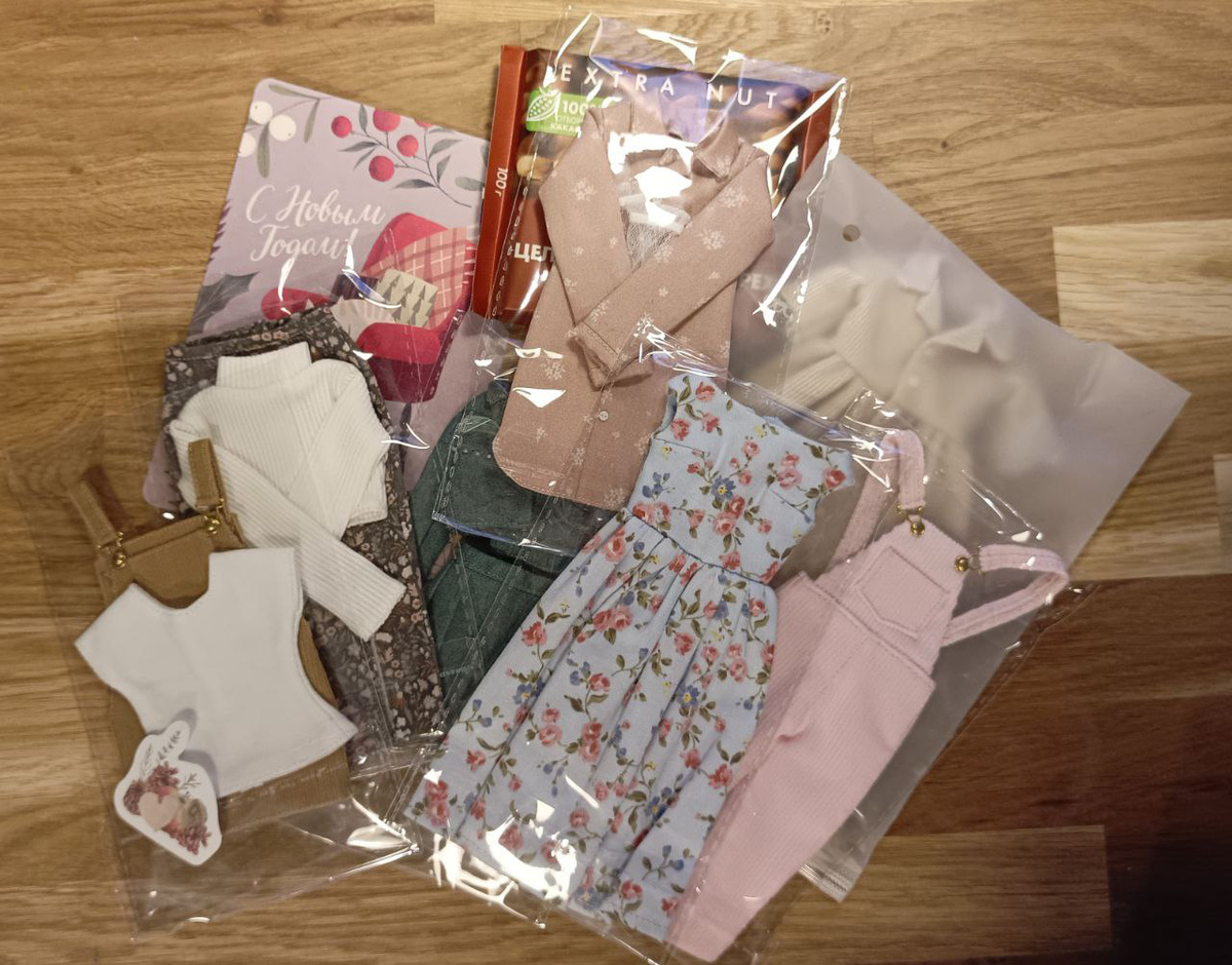 Сегодня покажу вещи, которые незадолго до Нового года, подарила моим Барби Мария Кочерова - талантливый коллекционер кукол и мастер. С Марией мы познакомились примерно года полтора назад, когда она купила у меня одну Барби, попавшую под выселение. По фотографиям девочки в шикарных новых нарядах я сразу поняла, что кукла очень удачно нашла новый дом)) А в этом году Мария поселила у себя ещё и Ликку в дополнение к Барби, так что общение продолжилось уже в такаровском чате. И вот она неожиданно приготовила невероятно классный подарок для моих девочек - целую кучу красивой одежды, сшитой вручную! Перед Новым годом мы устроили массовую примерку новой одежды, но руки дошли показать результат только сейчас.