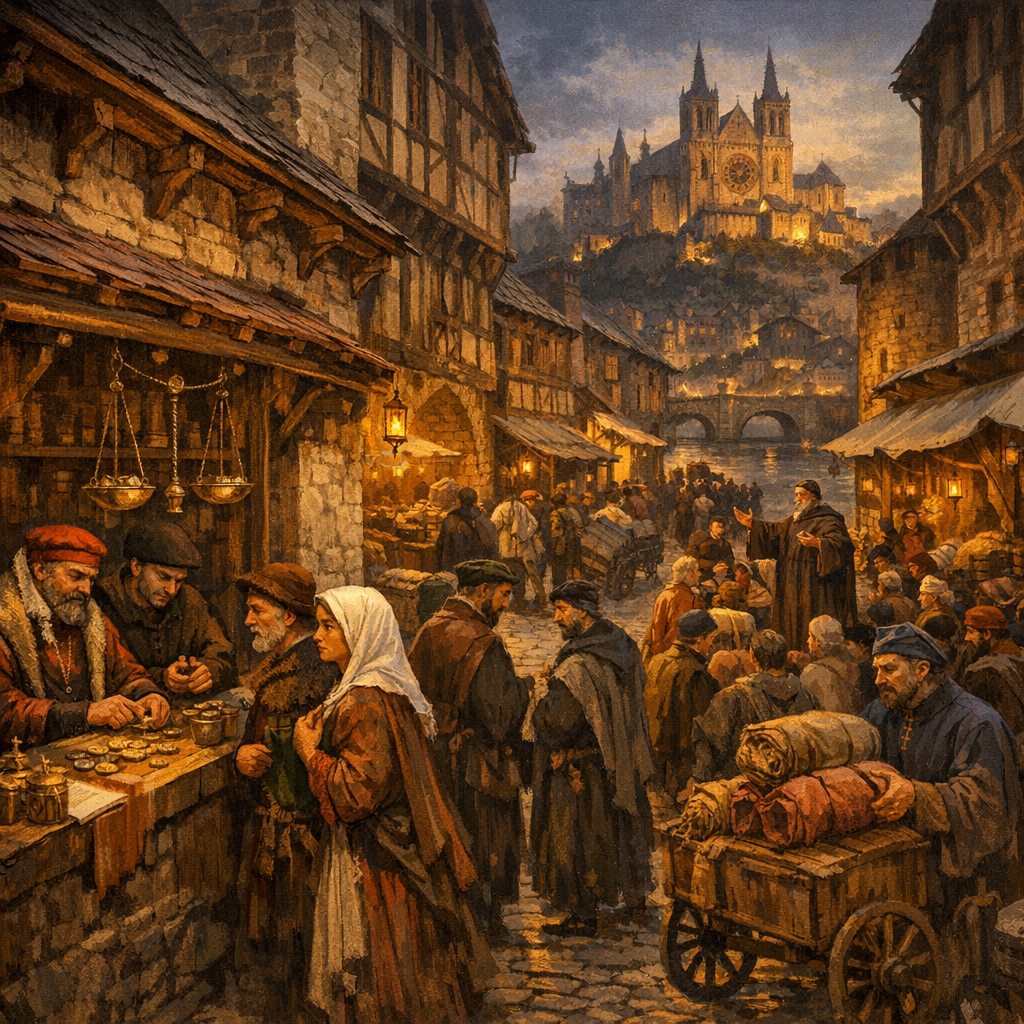 В последней четверти XII века Лион был не просто одним из крупнейших городов Франции. Это был финансовый пульс Западной Европы, перекресток торговых путей между Италией, Фландрией и германскими землями, место, где зарождались капиталистические отношения задолго до появления самого этого термина. На его узких улочках, пахнущих кожей и воском, в амбарах, ломившихся от товаров, и в меняльных лавках, где звенели монеты со всего континента, формировалось новое сословие — горожане-бюргеры, чье богатство создавалось не мечом, а расчетом. И именно здесь, в этой атмосфере экономических возможностей и социальных трансформаций, родилось движение, которое на столетия бросит вызов экономическим и идеологическим основам католической церкви.