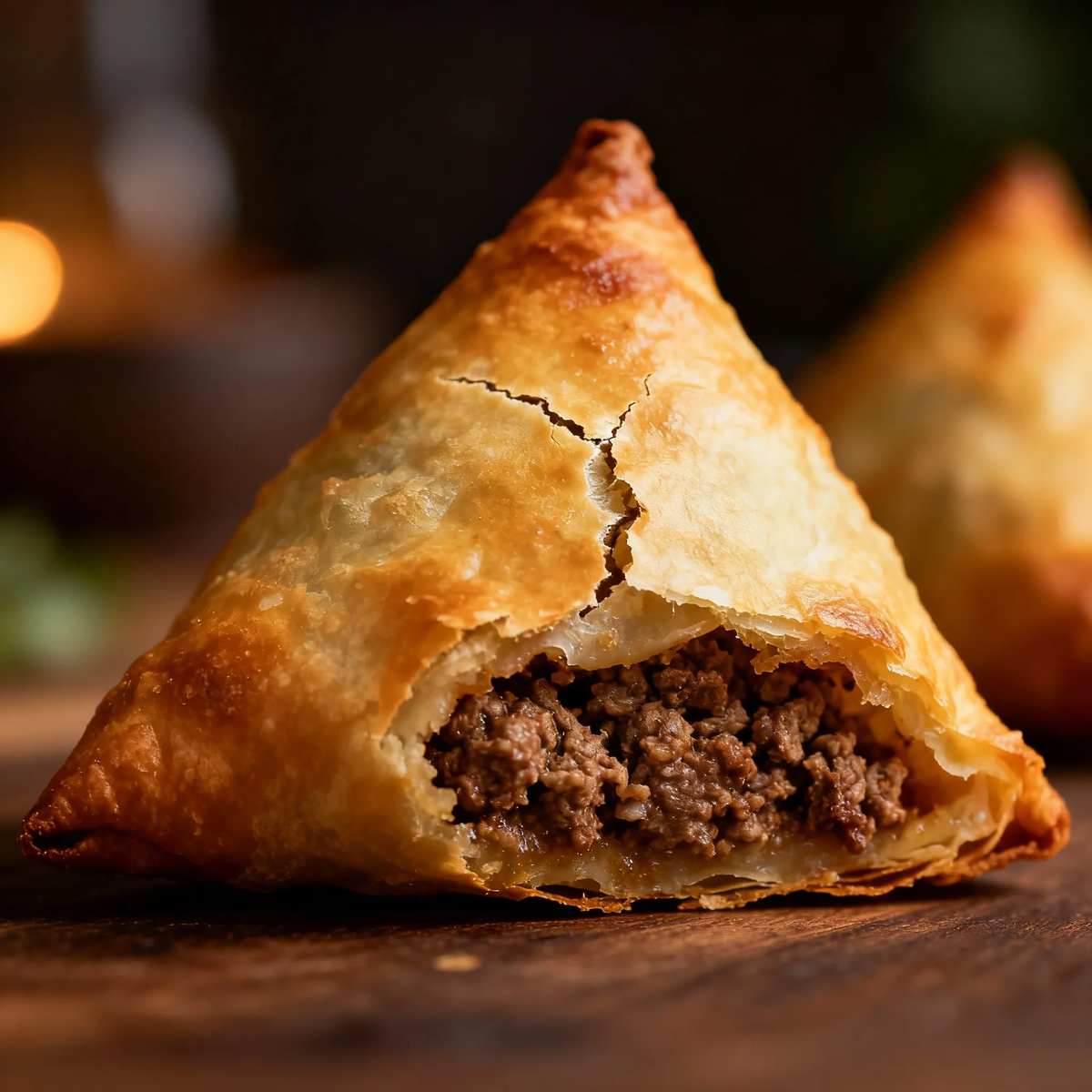 Вот классический домашний рецепт самсы (треугольной выпечки с мясной или овощной начинкой). Вариант с мясной начинкой и вариант на растительной основе.