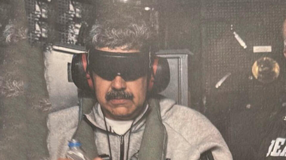 Президент США Дональд Трамп выложил в своем аккаунте фотографию другого президента: на лице (глазах) - черная маска, руки явно связаны, одет в серый спортивный костюм. Если верит посту Трампа в социальной сети Truth Social, снимок сделан на борту американского военного корабля. Дональд Трамп раньше сообщал, что президента В е н е с у э л ы и его жену сначала вывезли из столицы на вертолете, а потом пересадили на американский военный корабль. Ни-колас М а д у р о после серии в з р ы в о в в столице страны, президентом которой он является отдал приказ о развертывании обороны. События разворачиваются очень быстро. Многие не поверили, что можно так легко вывезти из страны главу государства. Так, вице-президент Вене-суэллы потребовала от Трампа доказательств. Если Вероятно поэтому Дональд Трамп и опубликовал фото: "Похвастался" трофеем. Фото обрезанное, на снимке не видно, что рядом находится первая леди страны С и л и я Ф л о р е с: Хотя ранее Трамп уверял, что супругов вывезли вмест