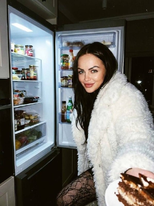 Кидаем в коменты название к фото ⚡️ Для автоматического создания фото жмите сюда Для ручной генерации: ⚙️ Нейросеть: Banana ⚙️ Промт (текст запроса): Используй референс лица, не меняй черты, возраст, форму лица и мимику. Крупный портрет с лёгким захватом фигуры по пояс, девушка смотрит прямо в камеру и нежно улыбается. Сцена: ночь, кухня. Девушка стоит очень близко к открытому холодильнику, дверца холодильника раскрыта в кадр и даёт холодное внутреннее свечение. В руке у девушки десерт, он хорошо виден на переднем плане. Внутри холодильника читаются разные продукты и баночки, ощущение бытового изобилия и лёгкого хаоса, но без грязи. Одежда и детали: объёмная белая шуба из песца, кружевные колготки, лёгкий гламурный беспорядок, эстетика indie sleaze и tumblr 2010-х с отсылкой к 90-м. Свет и стиль: прямой жёсткий свет вспышки в лоб, как у плёночной мыльницы, глубокие тени и высокий контраст. Дополнительно мягкое холодное свечение из холодильника на контур лица и мех. Плёночная зернист