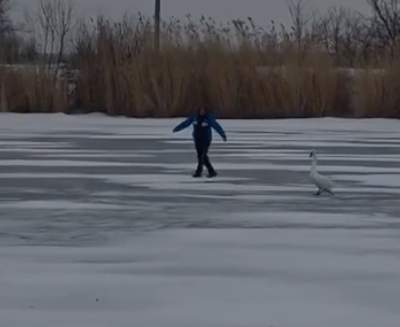 Спасательную операцию ради лебедя показали на видео под Волгоградом