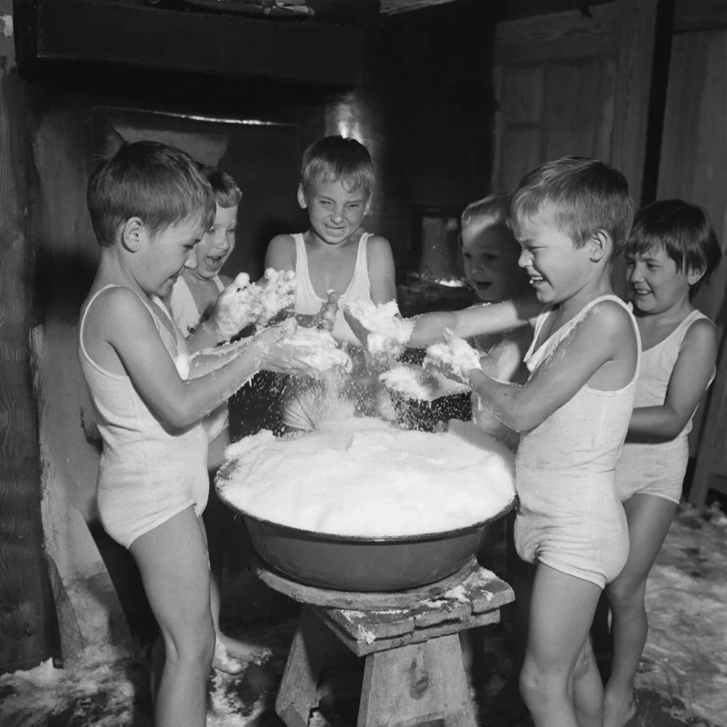 Утро начиналось одинаково: с водных процедур и обтирания снегом. Ровно в семь воспитатель, тётя Люба, входила в коридор с большим эмалированным тазом, полным рыхлого, искрящегося на свету снега. Мы, уже стоявшие в коридоре в одном белье, невольно ёжились от сквозняка, пробиравшегося сквозь старые рамы.