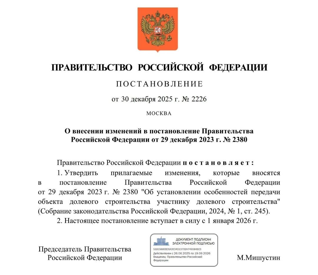 Разбираем ключевые моменты Постановления Правительства РФ от 30.12.2025г. № 2226.
