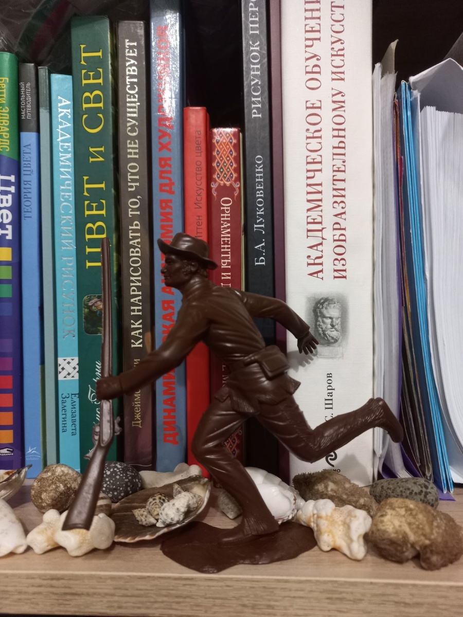 В моей коллекции уже были викинги, неандертальцы, бойцы Красной армии, и вот теперь добавились трапперы, или звероловы. Слово «траппер», наверное, правильное, но для моего детского восприятия они всегда были и останутся «ковбоями». Мы же смотрели фильмы про индейцев и ковбоев! Мой язык не повернётся назвать Шурхенда «траппером». Даже Натаниэль Бампо — герой романов Фенимора Купера — навсегда останется в памяти не как «зверолов», а как Зверобой, друг Чингачгука Большого Змея. Качественная реплика донецких «ковбоев» от фирмы «Арк-модел» — отличный материал для натурного рисования.