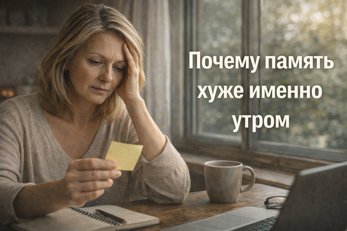 Вы проснулись, идёте на кухню… и не помните, зачем. Смотрите на открытую вкладку в браузере — и не узнаёте, что вы искали. Чувствуете, что голова «тормозит», а нужные мысли ускользают. Это не возраст и не рассеянность. Это — физиологическая особенность мозга. И да: утром память действительно работает хуже. Особенно кратковременная. Разберём, почему это происходит и как помочь себе «разогнать голову». Мозг человека работает по циркадным ритмам — это суточные колебания активности, управляемые светом, гормонами и нейромедиаторами. Когда мы просыпаемся, организм ещё не «включен на полную». Он только выходит из фазы восстановления. Что происходит утром: 📌 В это время префронтальная кора, отвечающая за планирование, память и концентрацию, работает нестабильно. Во сне память сортируется: важное переносится в долговременное хранилище, ненужное стирается.