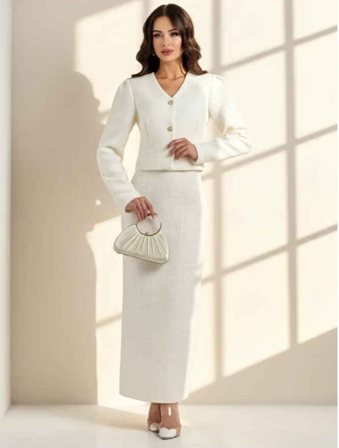 Всем привет, на связи Маркетплейснутая! Ищете идеальный костюм для офиса, торжества или просто для создания безупречного базового образа? Я изучила множество вариантов на Wildberries и готова поделиться первой частью подборки. Здесь собраны стильные двойки и тройки из качественных тканей — от классики до современных силуэтов. Приятного просмотра! Must-have сезона для деловых встреч и фотосессий. Плотная, но приятная ткань, приталенный жакет с акцентными плечами и длинная юбка до щиколотки. Силуэт визуально вытягивает фигуру, выглядит дорого и безупречно.
