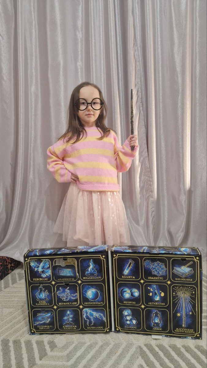 На Новый год мы подарили Полине набор опытов в стилистике Гарри Поттера.