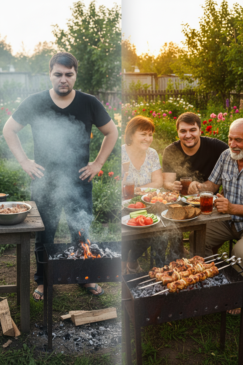 Третье — шашлык получается вкуснее, когда готовишь не в одиночку. С семьёй или с соседями. Может, просто настроение лучше, а может, процесс приятнее.