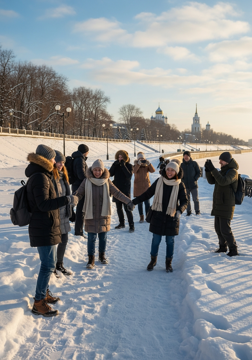 - Совет: одевайтесь теплее — зимой на набережной дует ветер с реки.