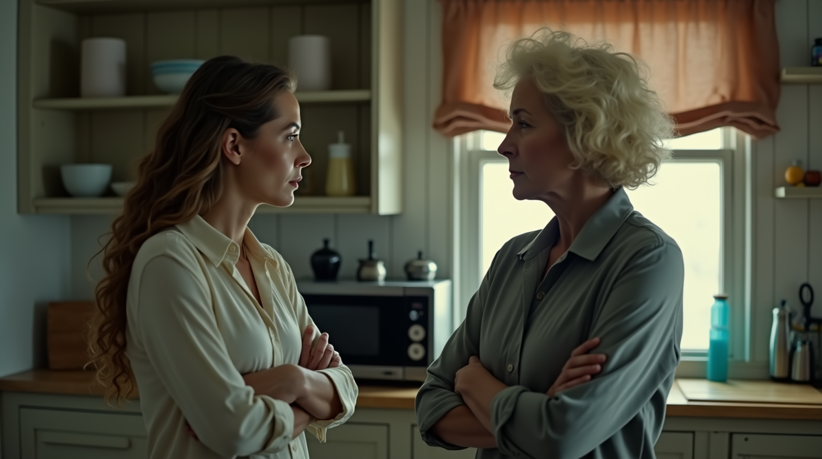 – Приютили! Слышали? Как собаку какую-то приютили. А я, между прочим, всю жизнь в этой семье хозяйничала. Сергей – мой сын, и я имею право здесь быть. А ты... ты пришла и всё перевернула. Мебель свою притащила, кухню переставила, даже мои цветы на балконе выкинула!
