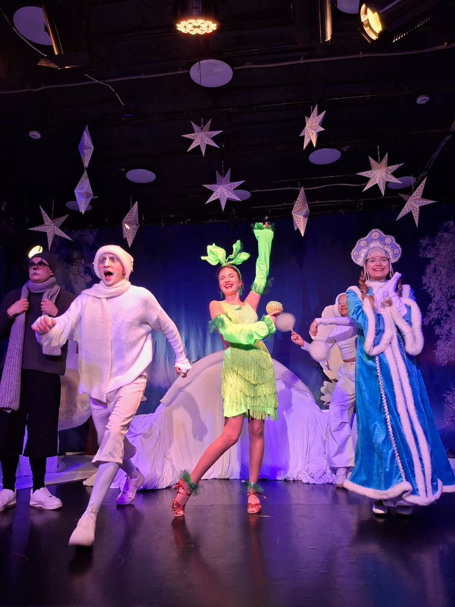 Я была с 4-летней дочерью и это идеальное попадание. Спектакль расчитан на дошкольников. Здесь понятные и знакомые персонажи для малышей: Баба Яга, Заяц, Ёлочка, Дед Мороз, Ёжик. Еще есть Тётушка Жара.