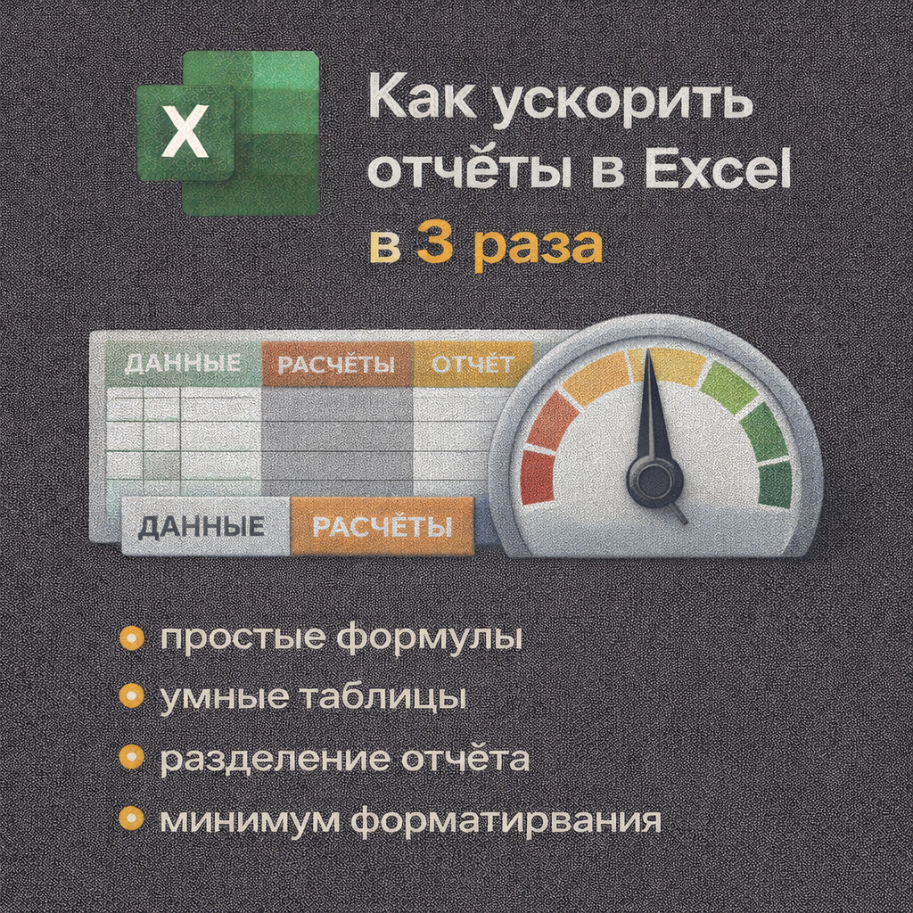 Как ускорить отчёты в Excel в 3 раза без VBA и магии. Практические приёмы ускорения Excel-отчётов: меньше пересчётов, быстрее открытие и стабильная работа без VBA. Не из-за объёма данных. А из-за решений «по привычке». Тормоза создают: