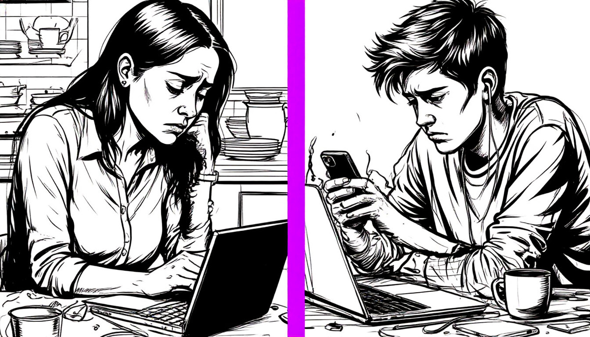2. Вы жалуетесь на его «экранную зависимость», пока сами «зависаете» в телефоне от бессилия.
