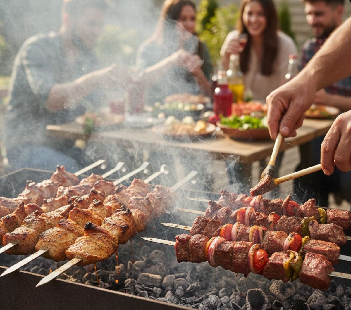 Шашлык — это не просто мясо на углях. Это маленький ритуал: запах дыма, разговоры вокруг мангала, спор о маринаде и вечный вопрос, который всплывает ещё в магазине: брать свинину или баранину? У каждого варианта своя логика. Свинина — про стабильный результат и мягкость почти без усилий. Баранина — про характер, яркий вкус и то самое “правильное” ощущение настоящего шашлыка. Понять разницу проще, если представить не идеальную картинку, а реальную ситуацию: угли то разгораются, то затухают, гости уже голодны, и хочется, чтобы получилось с первого раза. Свинину любят за предсказуемость. Самый удачный кусок для шашлыка — шея: в ней есть тонкие прожилки жира, которые на жаре плавятся и делают мясо сочным. Это словно встроенная страховка от пересушивания. Даже если вы отвлеклись на разговор, угли стали чуть горячее или куски лежали на решётке дольше, свиная шея часто всё равно выходит мягкой. К тому же вкус у свинины нейтральнее: она редко вызывает споры, и в компании почти всегда найдутся