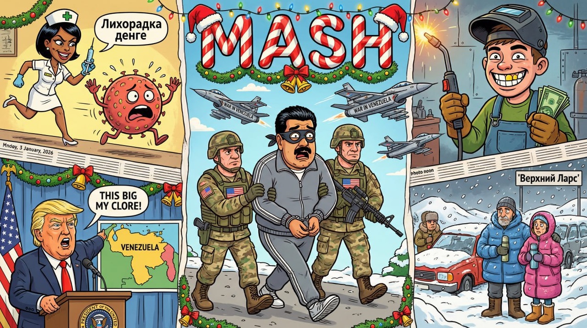 ! — США в ночь на 3 января начали военную операцию в Венесуэле и захватили президента Николаса Мадуро. В Каракасе прогремели взрывы — удары пришлись по военным базам и аэродромам столицы и штатов Миранда, Арагуа и Ла-Гуайра. Мадуро ввёл чрезвычайное положение — после спецназ «Дельта» вывез его из страны вместе с супругой Силией Флорес. Трамп выступил перед прессой — объявил, что Мадуро больше не президент. Нападение США осудили Россия, Беларусь, Куба, Колумбия, Иран, Испания, Мексика, Бразилия. — 10 боевиков взвода элитного подразделения ВСУ «Волки да Винчи» уничтожены в посёлке Железнодорожное Запорожской области. — Сварщики, машинисты, монтажники, автослесари и механики — самые перспективные специальности для обучения в 2026 году. Молодёжь, записывайте. — Бразилия разработала первую в мире однокомпонентную вакцину, которая может победить лихорадку денге. - Больше тысячи туристов третьи сутки мёрзнут на Верхнем Ларсе в -12°— люди часами стоят, чтобы попасть на Домбай в КЧР и Мамисон в