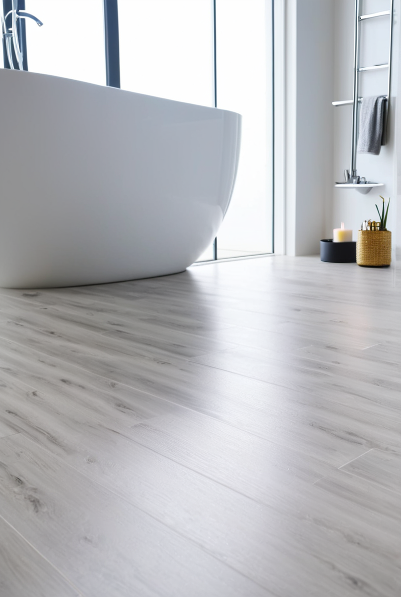 - Водостойкий ламинат (SPC ламинат, кварцвинил, ПВХ плитка): пластиковая основа как защита от протечек и разбухания от воды.