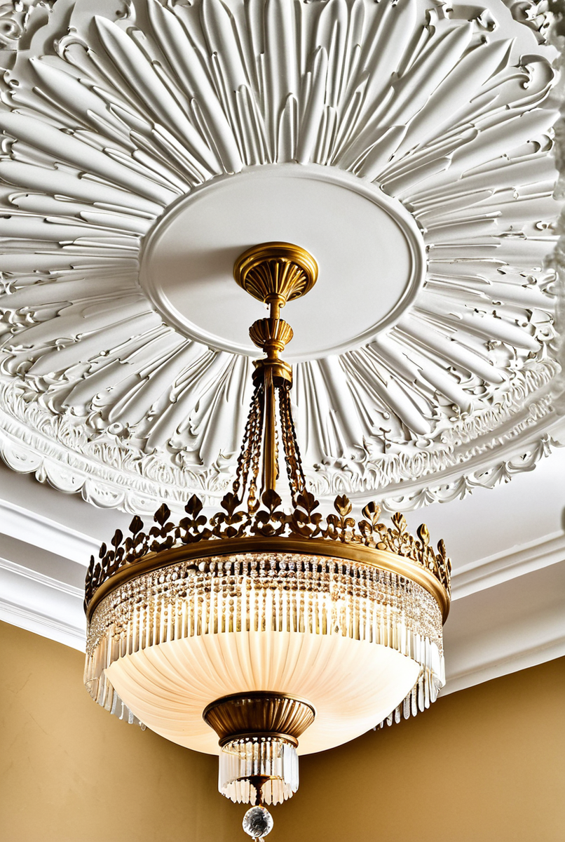 Гипсовая лепнина в дизайне интерьера: розетка под люстру как ключевой потолочный декор