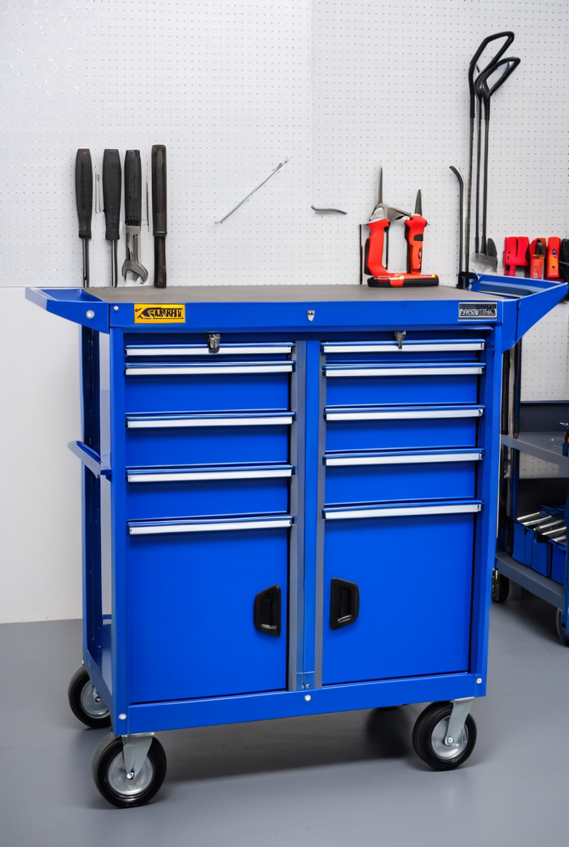 - Двухполочная инструментальная тележка для автосервиса и мастерской: организация рабочего места и эффективное хранение инструмента